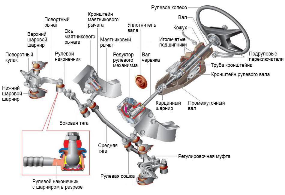 В основе этого механизма положена червячная передача. Представляет червяк собой винт с резьбой особого профиля. Этот винт располагается на валу, соединенном с рулевой колонкой.