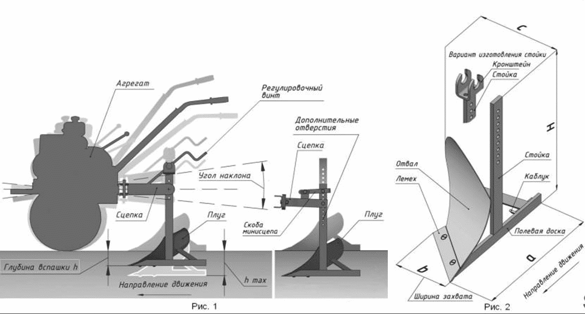 Алгоритм действий при настройке плуга под мотоблок Ока: