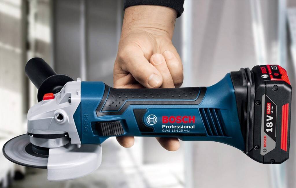 - BoschGWS 18-125 V-LI подойдет на тот случай, если рядом нет сети питания. Болгарка имеет два мощных аккумулятора.