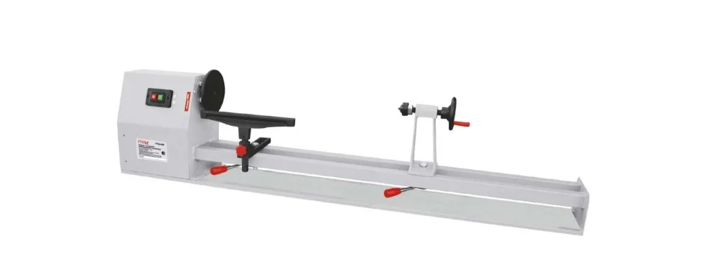 Наш обзор не обошёл стороной и токарный станок по дереву для дома модели Ставр СТД-400, который имеет специальные отверстия для установки на верстаке. Планшайба и винтовая пиноль дают возможность закреплять заготовки диаметром до 300 мм и длиной до 1 метра. Передвижная ручка позволяет жестко фиксировать опоры для резца. Благодаря магнитному выключателю модель защищается от самопроизвольного пуска после экстренного отключения питания сети. Агрегат имеет четыре скорости вращения шпинделя, изменение которых осуществляется путем перемещения ремня на двух шкивах. Высокое качество сборки обеспечивает долгий срок службы.
