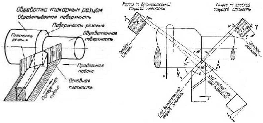 Рабочую головку инструмента формируют несколько плоскостей, а также режущих кромок, угол заточки которых зависит от характеристик материала изготовления заготовки и типа обработки. Державка резца может быть выполнена в двух вариантах своего поперечного сечения: квадрат и прямоугольник.