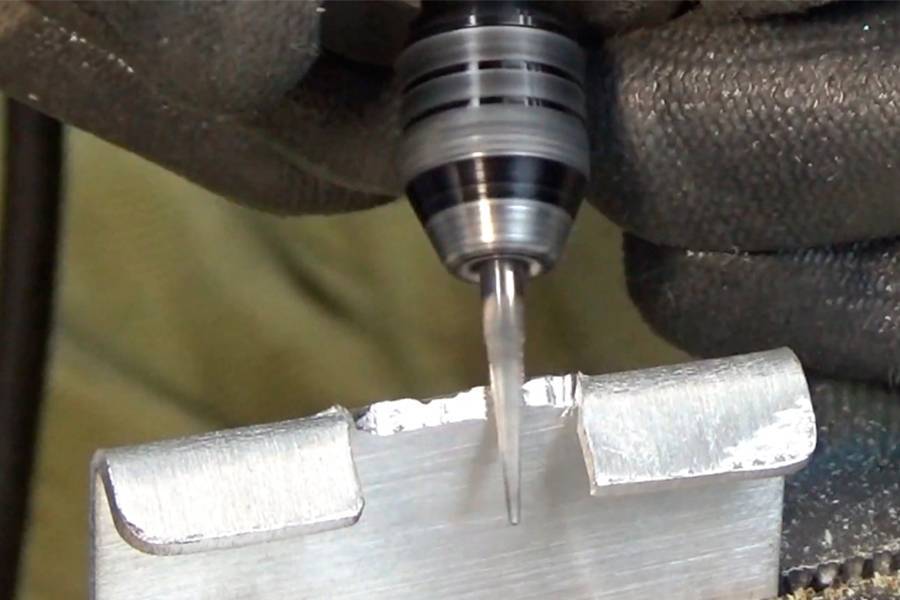 По нему пробивают отверстие борфрезой с шаровидной головкой.