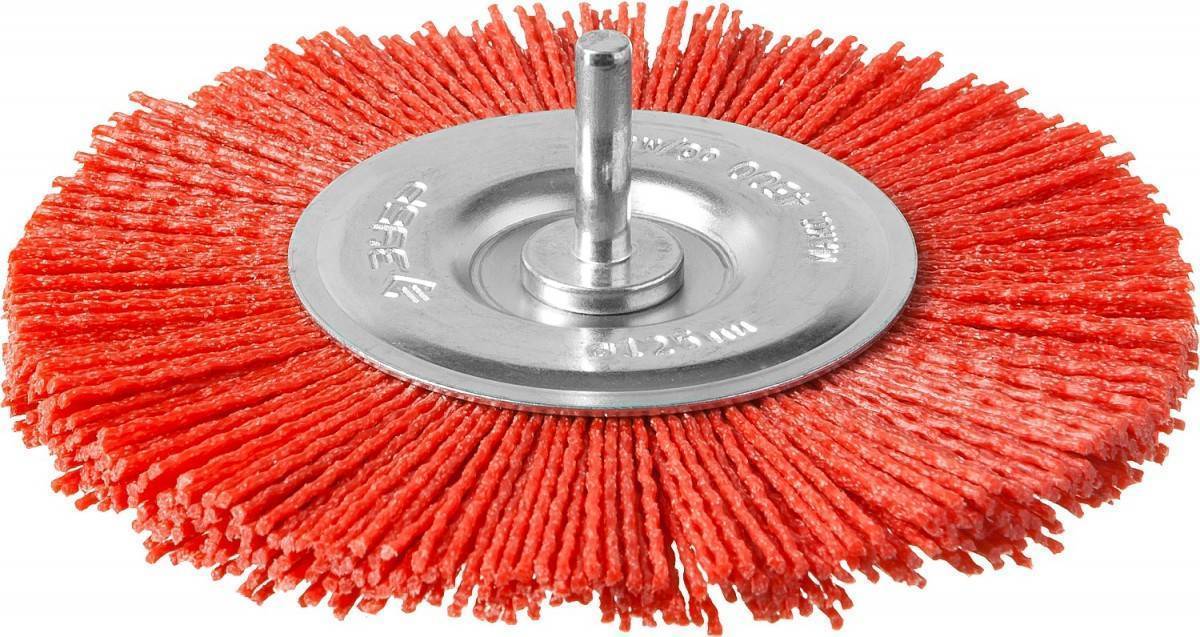 Еще одно довольно специфическое название для такого вида насадок — корщетка для дрели. Корщетка для пневматической промышленной дрели используется для зачистки различных деталей от ржавчины, налетов флюса или во время полировки изделий для придания им товарного вида. Хвостовик 6 см длиной жестко закрепляется в патроне инструмента, нейлоновая основа отлично полирует тонкий стальной лист, не допуская при этом его повреждений за счет своей мягкости.