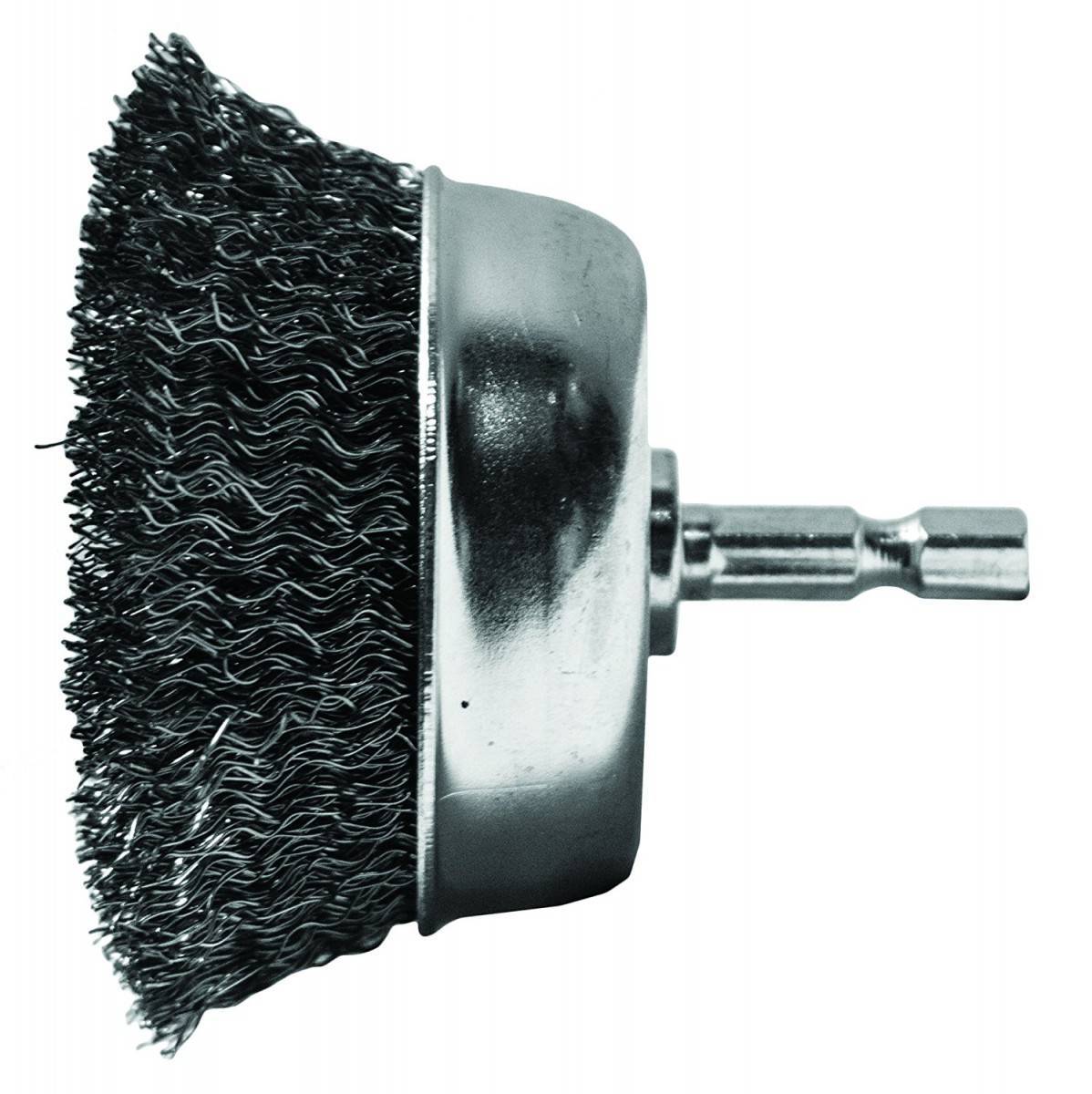 Щетка чашечная для дрели применяется в особо трудоемких работах, чтобы очистить поверхность от разных загрязнений: сварочные окалины, следы коррозии, капли бетона, раствора или шлака. Их используют, чтобы подготовить поверхности для окрашивания или нанесения лака, грубой обработки железных заготовок.