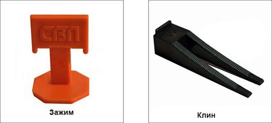 Отечественная система выравнивания состоит из двух элементов: клина и зажима. Клинья можно использовать многократно, а зажимы — расходный материал, так как после укладки часть из них останется внутри шва.