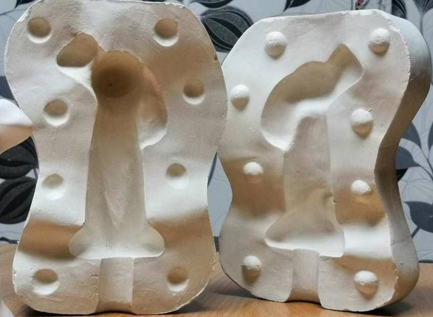 Важно! Форму требуется делать исключительно из очень качественного скульптурного гипса. Гипс должен быть пуховым, не содержать инородных включений и комочков