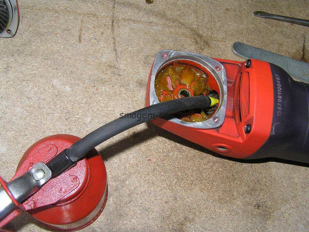 Касательно смазывания редуктора, дела обстоят немного сложнее. Большинство современных моделей оснащены емкостями. В них, открыв крышечку, вливают масло либо вносят другой подходящий смазочный состав. Расположение нужного отверстия часто указывается в инструкции. Там же содержится схема снятия крышки. Весь процесс проходит так: