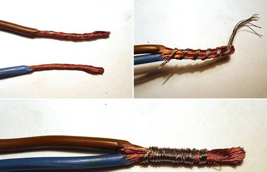 Важно отметить, что нельзя скручивать жилы висящих кабелей узлом, так как при этом контакт будет оставаться максимально прочным на разрыв, однако, к сожалению, будет обладать крайне низкими характеристикамиэлектропроводности