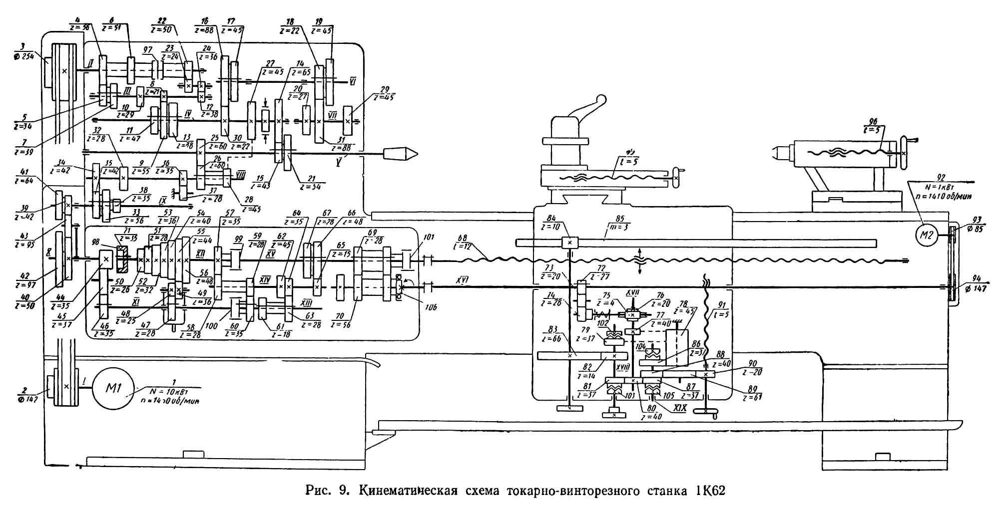 Каждый элемент на схеме имеет свое обозначение. Обозначения надо учить, чтобы понимать схему. Вал обозначается прямой линией, ходовые винты — волнистой линией и так далее.