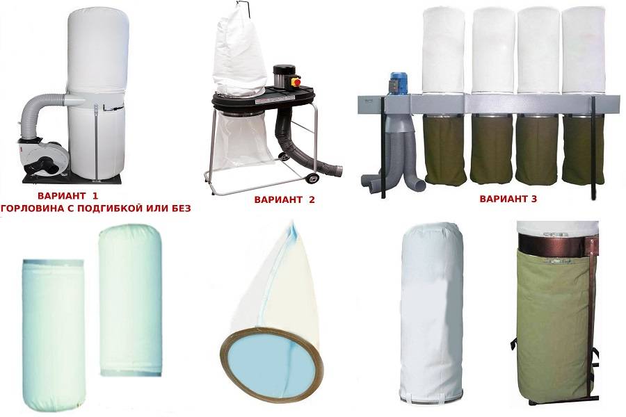 Оборудование оснащается карманными и цилиндрическими картриджными фильтрами. Элементом фильтрации может быть ткань или перфорированая бумага, также производители используют синтетические волокна или картон. Фильтровальные мешки располагаются вверх ногами. Когда вентилятор не работает, они удерживаются благодаря металлическим лёгким распоркам.