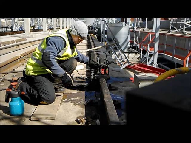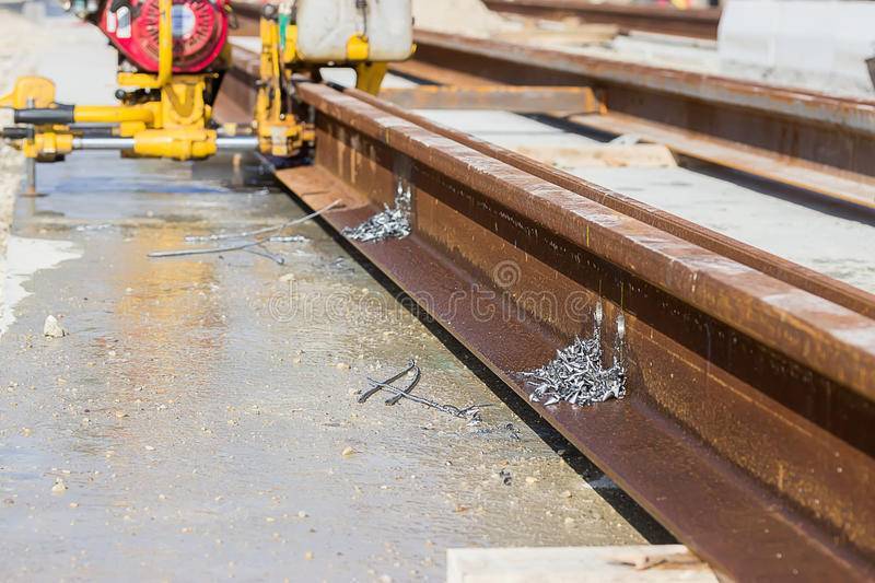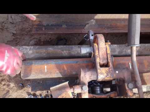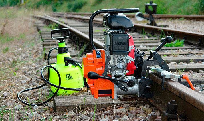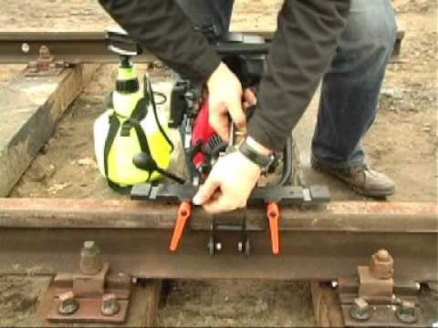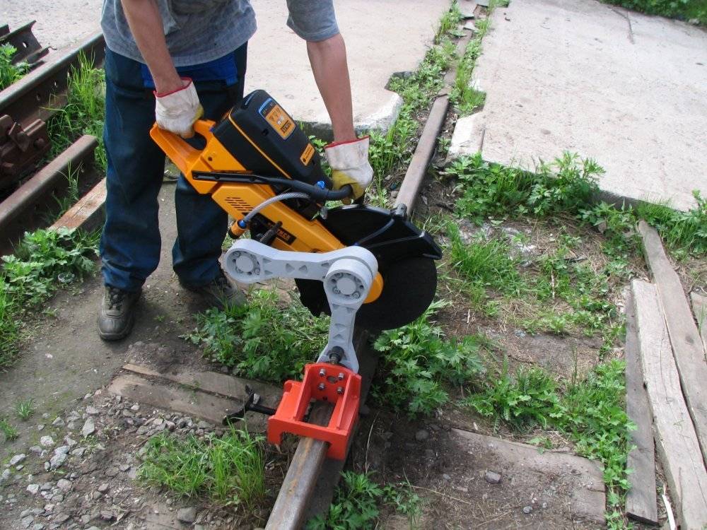 Для рельсорезных станков используют круг или полотно. РМ5ГМ не только тяжелый, но и трудный в обслуживании. После установки, полотна, как и сверла, нуждаются в обильном поливе жидкости (специальный раствор или обыкновенная вода). Давить на ручку необходимо не сильно, иначе разрез получиться дугообразный.