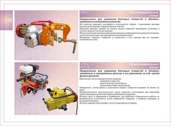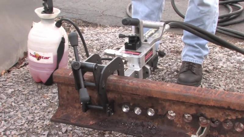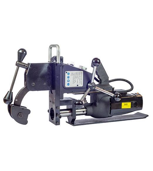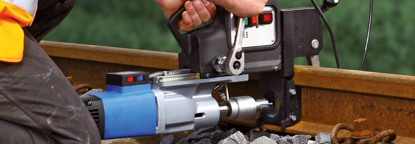 Для выполнения отверстий в рельсах используются специальные магнитные станки, которые могут быть оснащены электрическим или бензиновым двигателем. Такие станки как правило используются, когда нужно просверлить отверстия под болты заземления, рельсовую контактную систему и изоляционные стыки. Благодаря специальным переходникам под различные профили рельс, обеспечивается легкое позиционирование, обслуживание и сверление. А при помощи быстрозажимной системы, автоматически задается высота отверстий и расстояние между ними, обеспечивается оптимальное давление на подошву рельса, гарантируя необходимую устойчивость при сверлении.