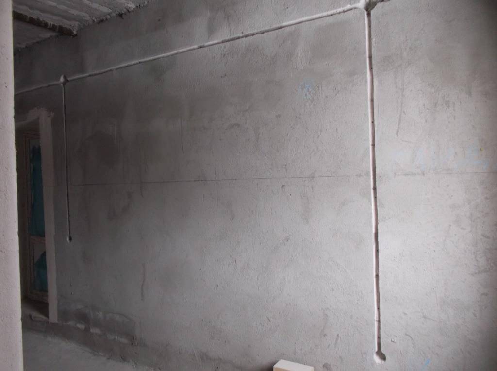 Со стенами дела обстоят намного легче, т.к. можно опираясь на логику и общепринятые стандарты определить, где проходит проводка, благодаря чему можно избежать попадания в нее перфоратором. Итак, как правило, кабельная линия проходит параллельно под потолком на расстоянии 15 см от него и спускается вниз к электрическим точкам под прямым углом, как показано на фото ниже: