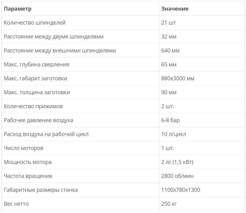 Характеристики известных моделей сверлильно-присадочных станков