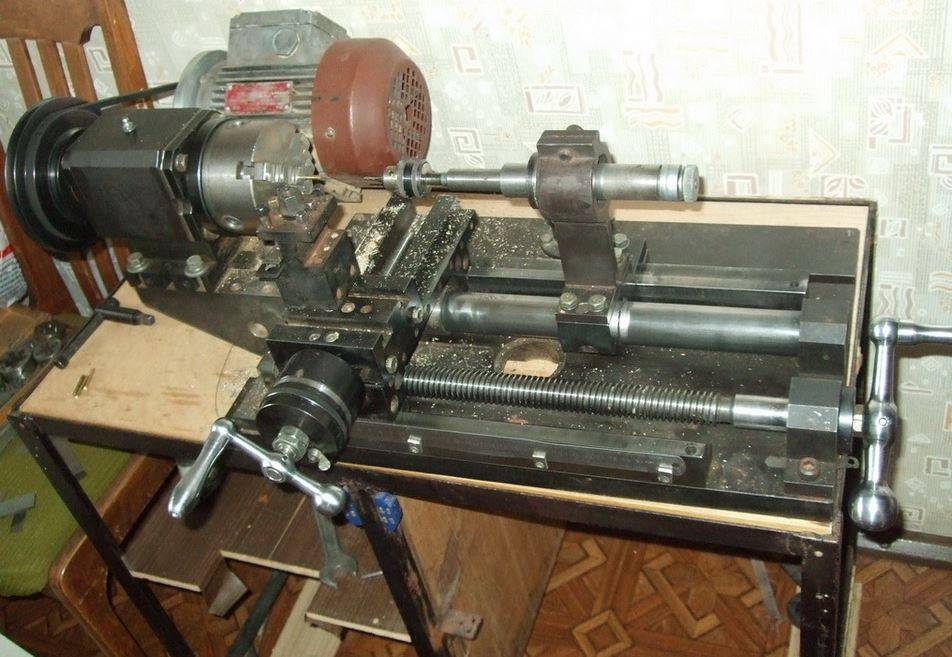 Не должно возникнуть никаких проблем и с поиском электродвигателя, которым следует оснастить токарный мини-станок. Даже если вам не удалось найти двигатель требуемой мощности (500–1000 Вт — для обработки мелких деталей, 1500–2000 Вт — для крупногабаритных заготовок), то вполне подойдет бывший до этого в употреблении агрегат, ранее установленный на бытовой швейной машинке. Кроме того, в качестве привода для компактных токарных станков допустимо применять электродрели или шлифовальные машины.