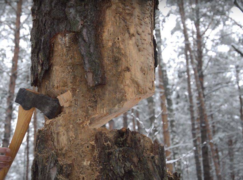 Облегчить инструмент удалось за счет углепластиковой рукояти. Она не боится влаги и не пересыхает. Однако материал разрушается при сильных ударах кувалды по обуху застрявшего топора. Поэтому придется работать по схеме удар-извлечение-удар. Со временем на лезвии скапливается налипшая смола, что ухудшает колку дров. Очистку лучше производить с помощью органических растворителей.