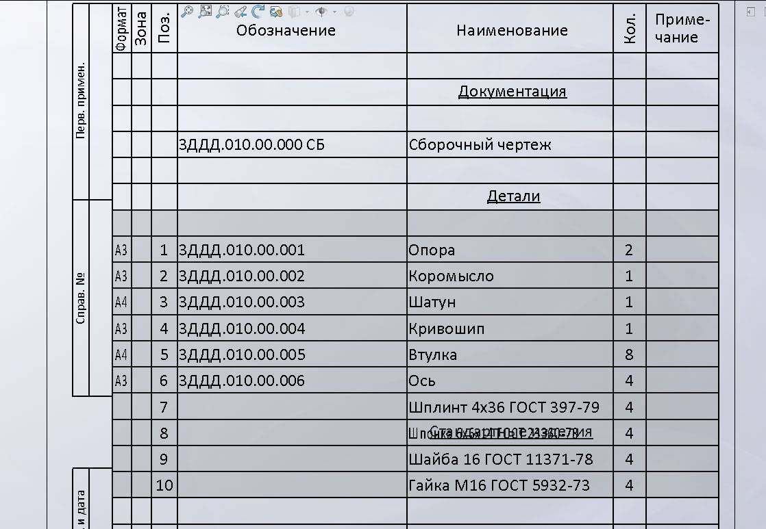 На этом спецификация в SolidWorks по ГОСТ ЕСКД готова.