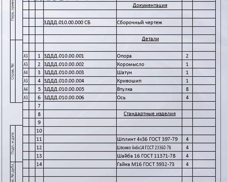 Теперь нам осталось лишь расположить спецификацию на шаблоне чертежа, которой можно скачать здесь!