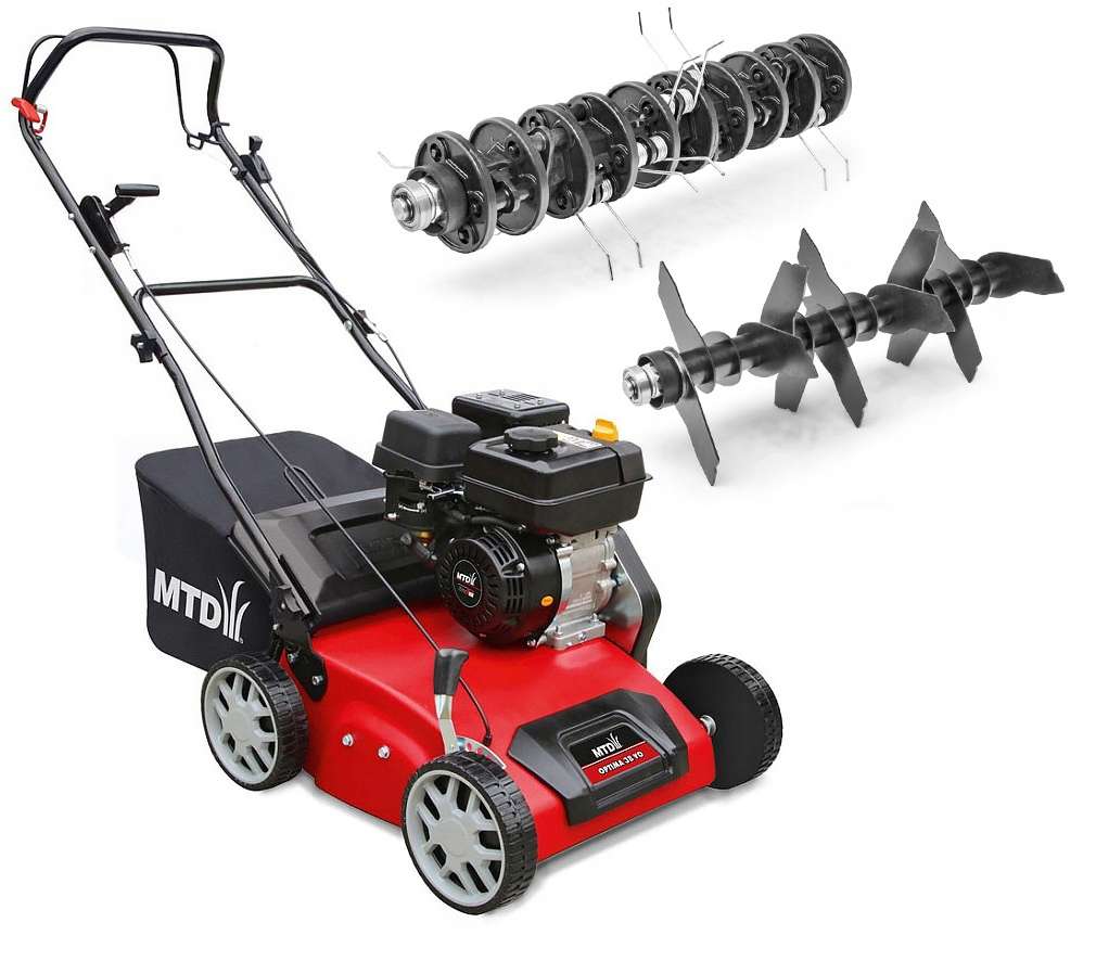 Модель Optima 35 VO от американской марки MTD сочетает передовые технологии и удобство использования. Может быть применена для уборки лишайника, мха и мусора с участка. Мотор работает с минимальным выделением газов, экономично потребляет топливо, да и практически не шумит. Ширина обработки участка составляет 38 см, при глубине – 15 см. Можно настроить 1 из 6 вариантов режимов погружения ножей. Оснащен аэратор-скарификатор 45-литровым травосборником. Весит аппарат немного – 29 кг, что положительно отражается на его маневренности и компактных размерах.
