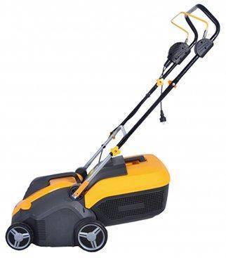 Аппарат работает с электромотором на 1100 Вт и имеет 4 режима по регулировке глубины. Общий вес модели составляет 9.9 кг. Система из валика с ножами включает 14 лезвий, которые выполнены из углеродистой стали. Длинная ручка складывается в 2 местах, и вертикуттер помещается на полку в кладовой. Для переноса травосборника предусмотрена отдельная рукоятка, повышающая удобство эксплуатации. По ширине аэратор прокалывает полосу 32 см.