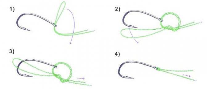 Не менее популярным, чем Паломар, является еще один простой узел крепления вертлюжка или крючка к плетенке – Клинч. В своем упрощенном варианте он вяжется в такой последовательности: