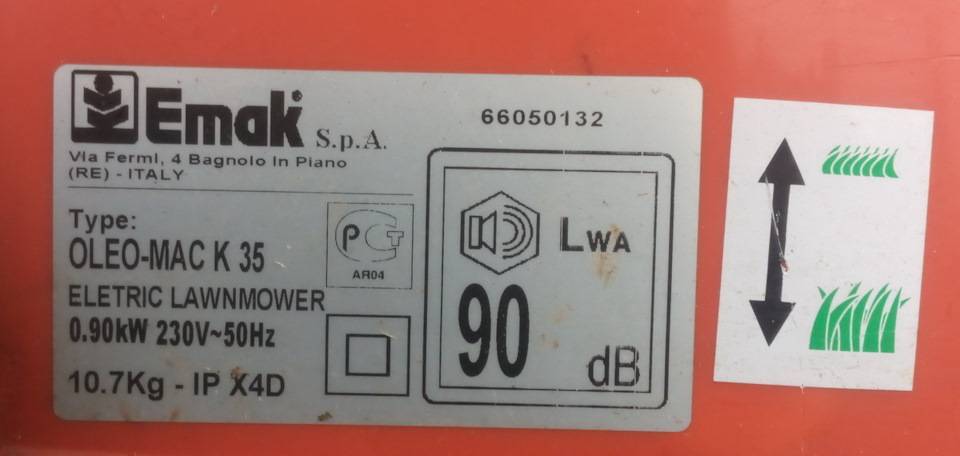 Характеристики и описание: Электрическая газонокосилка Oleo-Mac К 350 (6605-9113)
