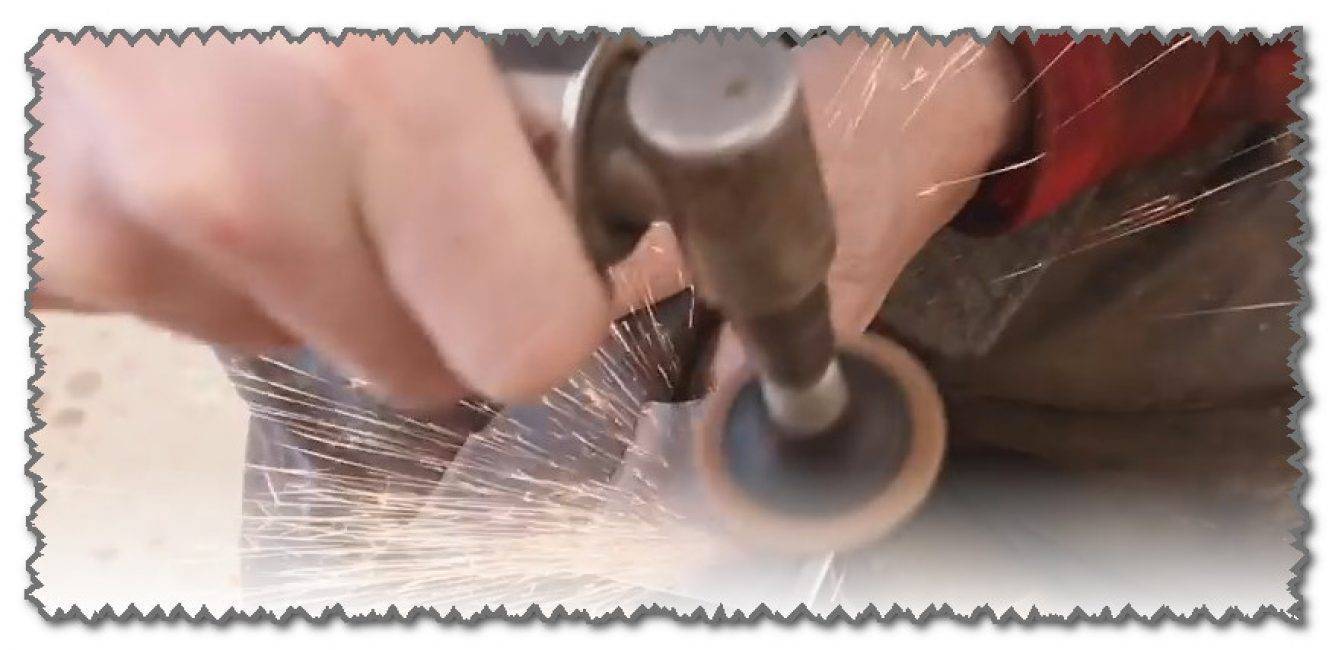 - Обработку ведут до полного удаления заусенец и щерблений на кромке топора.