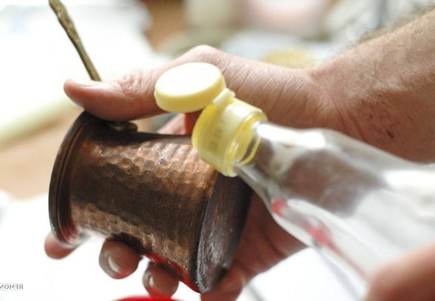 Важнейший этап – очистка объекта от окислов, жира и ржавчины (соединение наносится на абсолютно чистую заготовку). Для этого подойдёт какой-либо известный метод, например, белый уксус. Достаточно опустить в него медные объекты на несколько часов. В качестве альтернативной версии, делается смесь из пищевой соды. Она обязана быть густой, чтобы можно было нанести на плоскость. Далее загрязнение и коррозия без труда сводятся старой зубной щёткой.
